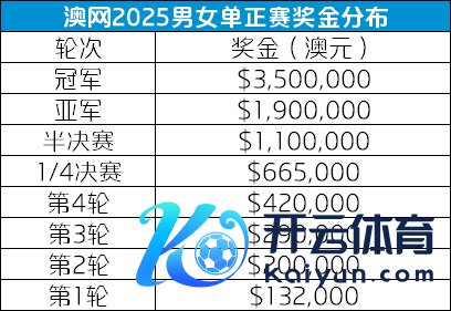 2025澳网单打奖金分派表。