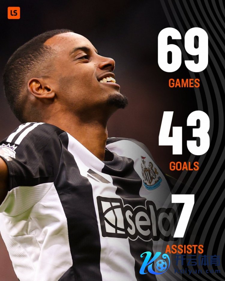 凭证统计,伊萨克英超糊口于今踢了69场比赛体育录像/图片,照旧孝敬了43粒进球和7次助攻,制造了50粒进球。
